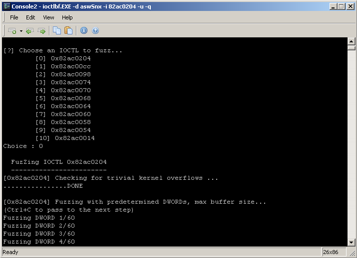 Fuzzing only a given IOCTL (quiet mode):